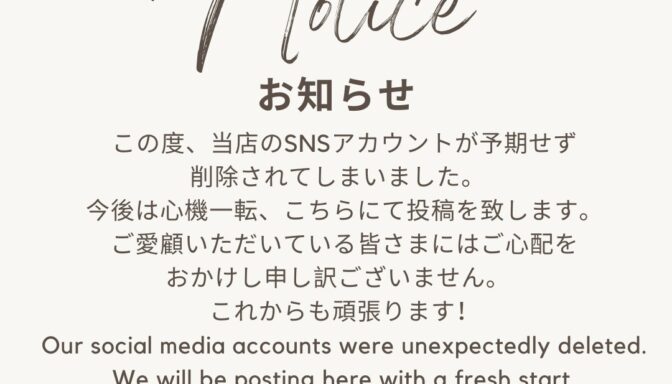 Please note that our Instagram accounts were deleted and have been recreated as new accounts.